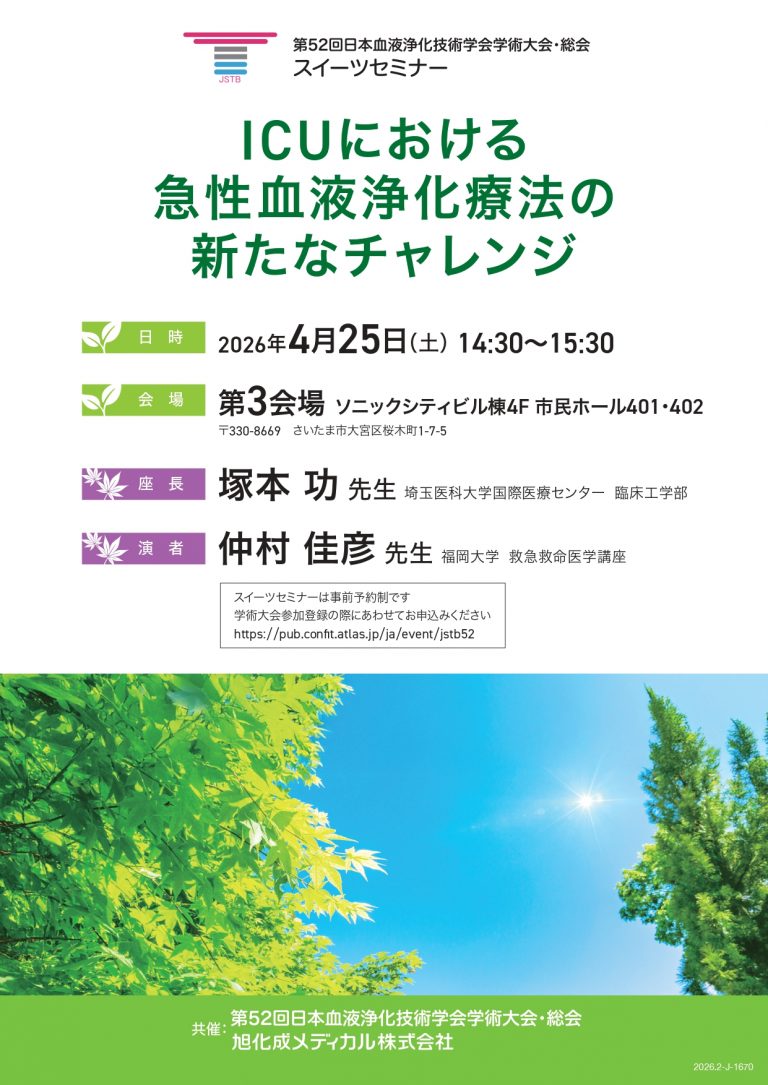 ホーム 学会・セミナー情報 学会・セミナー一覧 ICUにおける急性血液浄化療法の新たなチャレンジ
